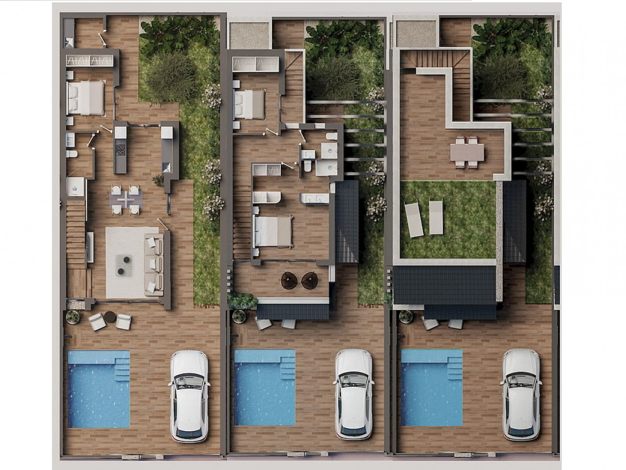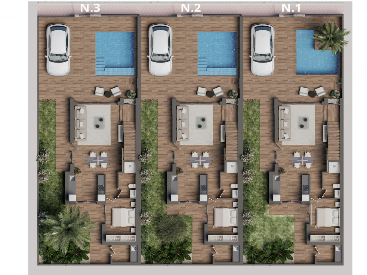 Nieuwbouw project van leuke villa’s op loopafstand van het strand. Capricho III is een nieuw project in het hart van San Perdo del Pinatar. Dit project bestaat uit 3 villa’s met privézwembad en solarium.