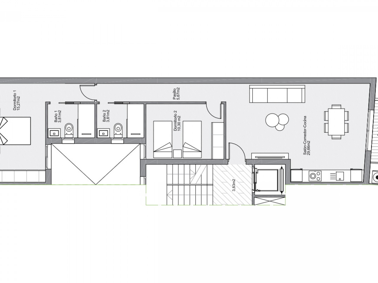 U kunt kiezen uit appartementen met 1 of 2 slaapkamers, elk met 2 badkamers (waarvan één en-suite). De open indeling is ontworpen om de ruimte en het natuurlijke licht te maximaliseren, wat zowel comfort als functionaliteit garandeert. Elke woning biedt een royale binnenruimte, hoogwaardige afwerking en een rustige sfeer.