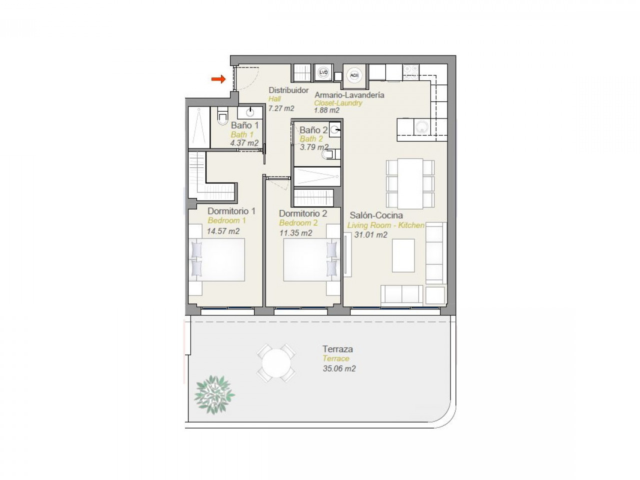 Prachtige woningen hebben 2 slaapkamers, 2 badkamers, open keuken met de zithoek, inbouwkasten en een groot terras, allemaal in een open configuratie zonder obstakels voor het uitzicht op zee. Elke woning heeft een eigen parkeerplaats en berging.