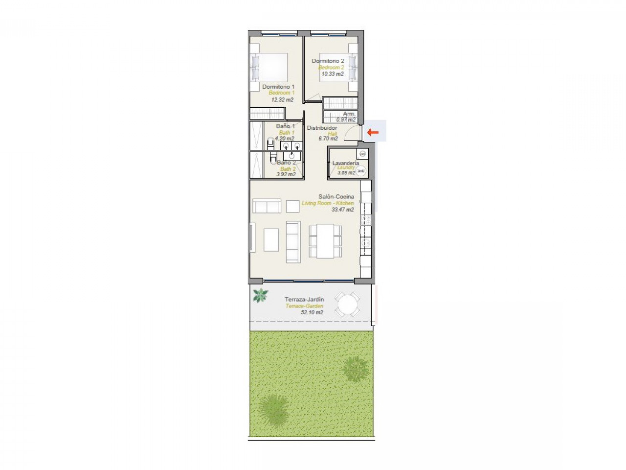 Prachtige woningen hebben 2 slaapkamers, 2 badkamers, open keuken met de zithoek, inbouwkasten en een groot terras, allemaal in een open configuratie zonder obstakels voor het uitzicht op zee. Elke woning heeft een eigen parkeerplaats en berging.