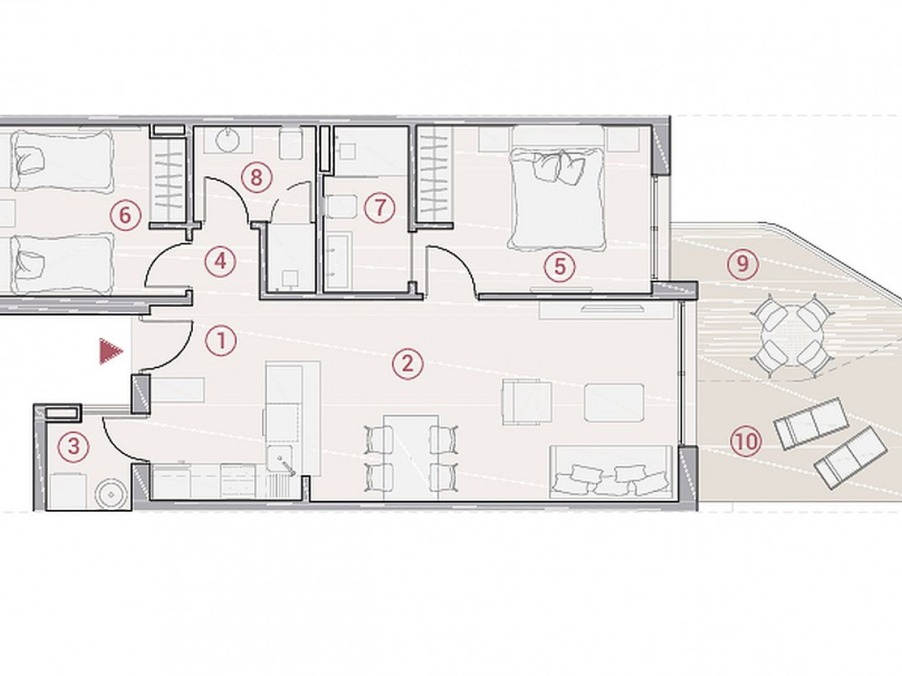 Deze lichte appartementen hebben 2 of 3 slaapkamers en 2 badkamers, perfect voor koppels of kleine gezinnen die op zoek zijn naar comfort en ruimte. Daarnaast kun je genieten van grote terrassen met uitzicht op zee, waar je kunt ontspannen en genieten van unieke momenten.