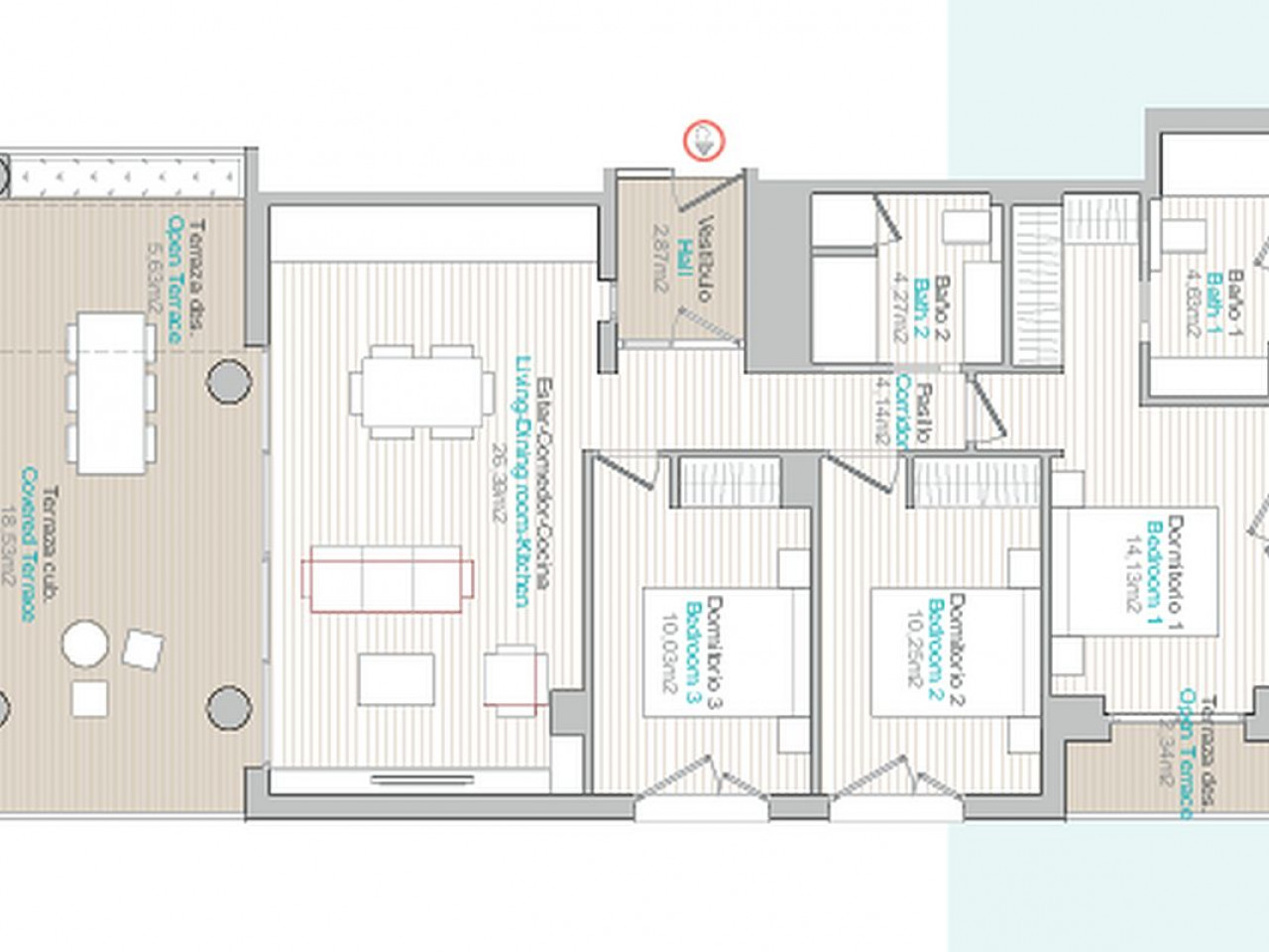 Appartementen met 1, 2 en 3 slaapkamers met grote terrassen die de optimalisatie van ruimte en functie op zijn best combineert. Grote gemeenschappelijke ruimtes met tuinen, zwembad, paddle, kindergedeelte, fitnessruimte en overloopzwembad met uitzicht op zee.