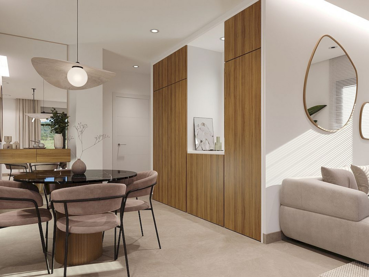 Nieuwbouwappartementen in het prestigieuze Hacienda del Álamo Golf Resort, een omheinde gemeenschap in de regio Murcia die rust, veiligheid en een volledig dienstenaanbod combineert.