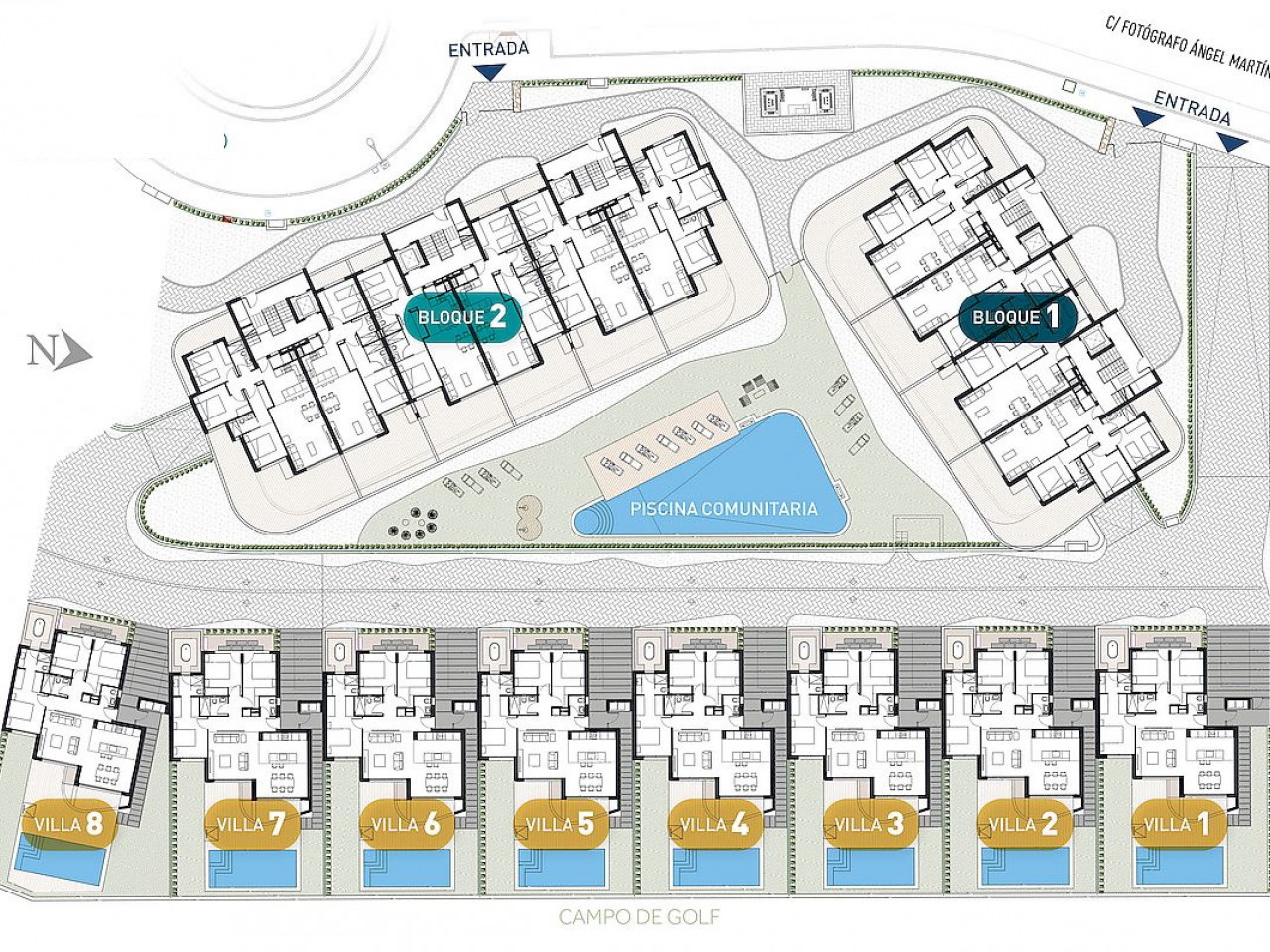 De appartementenblokken bieden woningen met 2 of 3 slaapkamers, beschikbaar op de begane grond en tussenverdiepingen met grote terrassen of als penthouses met privésolaria.
