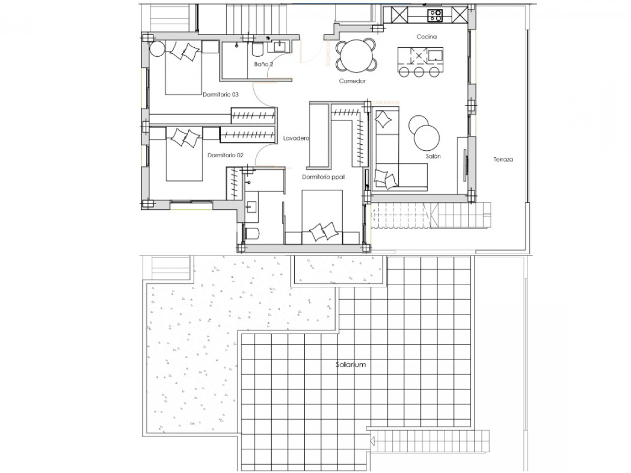 Er zijn vijf blokken met elk acht appartementen, met 2 gemeenschappelijke zwembaden, parkeerplaatsen en opslagruimtes. De appartementen zijn verdeeld over de begane grond met tuin, de eerste en tweede verdieping met terras en de derde verdieping met privékapsel, met twee woningen op elke verdieping en een lift om van de ene naar de andere verdieping te gaan.