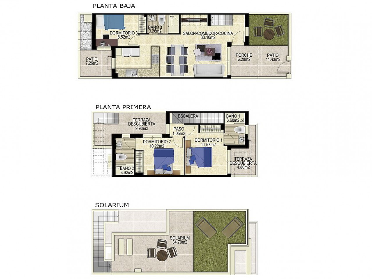 (1 en suite), privéterrein, parkeerplaats en privézwembad. De woningen hebben ook de optie om een fantastisch solarium op het dak te bouwen om te genieten van de Spaanse zon.