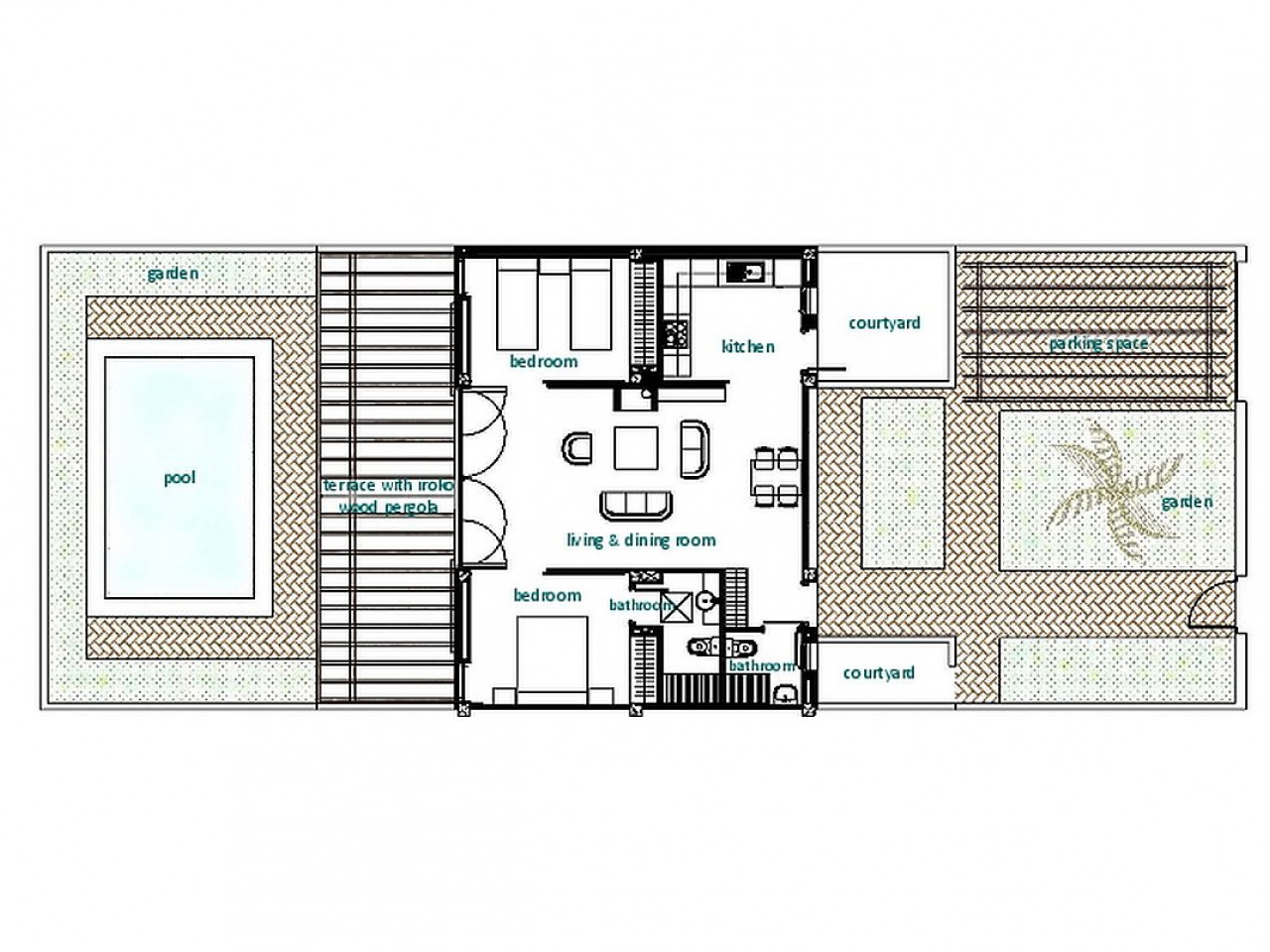 Een woning vol exclusieve details zoals de vijver bij de ingang en een veranda overdekt door een behandelde houten pergola.