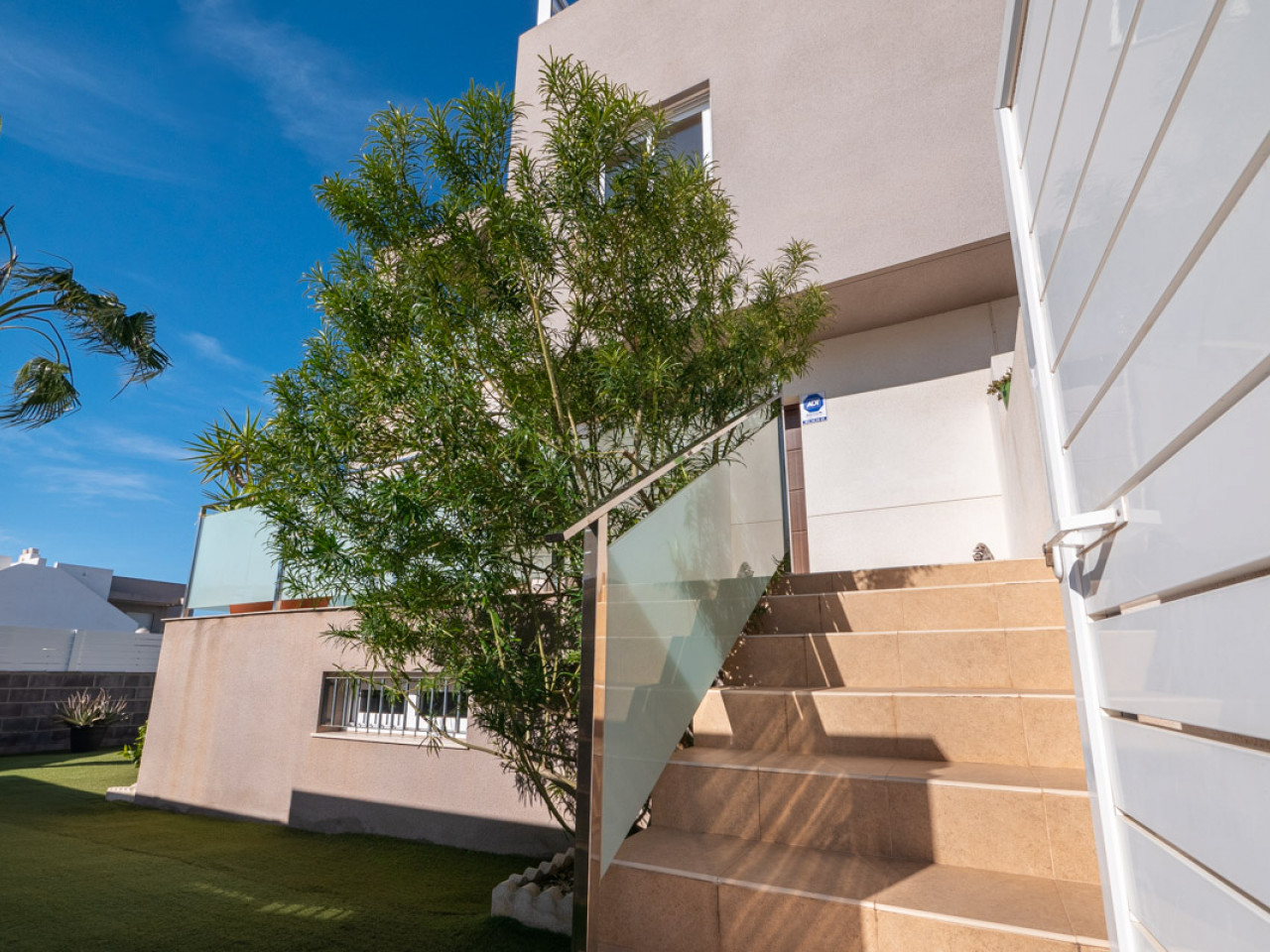 Voor de snelle beslisser die op korte termijn de stap wil maken Welkom bij deze mooie woning, gelegen op een hoekperceel in een aantrekkelijke en rustige buurt. Hier vind je een huis met veel ruimte en flexibiliteit, dicht bij alles wat het dagelijks leven gemakkelijk en plezierig maakt. Op loopafstand van gezellige bars, geweldige restaurants en handige winkelmogelijkheden is dit huis perfect voor zowel ontspanning als gezelligheid. Als extra bonus is er toegang tot een gemeenschappelijk zwembad, waar je op warme dagen van de zon kunt genieten en een duik kunt nemen. Begane grond: Wanneer je de woning betreedt, word je begroet door een gezellige groene tuin met een terras. Binnen vind je een ruime en lichte woonkeuken, perfect om familie en vrienden samen te brengen. Deze verdieping beschikt ook over een praktisch gastentoilet, en er is de mogelijkheid om een deel van de woonkamer om te bouwen tot een extra slaapkamer indien nodig. Een trap vanaf de begane grond leidt naar een indrukwekkende garage die veel potentieel biedt. De garage is al voorzien van water en elektriciteit, waardoor hij gemakkelijk kan worden verbouwd tot extra kamers, een creatieve werkplaats of misschien een kantoor aan huis. Eerste verdieping: Op de eerste verdieping vind je een ruime ouderslaapkamer met een eigen badkamer, een extra slaapkamer en nog een badkamer. Deze verdieping is zowel praktisch als comfortabel, met ruimte voor het hele gezin. Vanaf het hoekbalkon kun je genieten van het uitzicht op de rustige omgeving – een perfecte plek voor een kopje koffie ‘s ochtends of een rustig moment in de zon. Dakterras: Het dakterras van het huis is een waar juweeltje. Hier vind je een buitendouche en een functionele buitenkeuken, waardoor het ideaal is om zomeravonden door te brengen met koken en genieten met vrienden en familie. Het uitzicht vanaf het terras is adembenemend, met het zoutmeer en de nabijgelegen muziekzaal op de achtergrond. Fantastische locatie: Het pand heeft een geweldige locatie met goede busverbindingen en ligt op slechts 30 minuten rijden van de luchthaven van Alicante, waardoor het gemakkelijk is om van en naar het gebied te reizen. Je bent ook dicht bij alles wat je in het dagelijks leven nodig hebt. Buitenruimtes: De tuin op het hoekperceel biedt veel mogelijkheden voor het creëren van een buitenruimte die past bij jouw behoeften. Je kunt er ontspannen, werken aan kleine projecten of genieten van tijd met familie en vrienden. Dit huis biedt een prachtige combinatie van charme, ruimte en een uitstekende locatie.