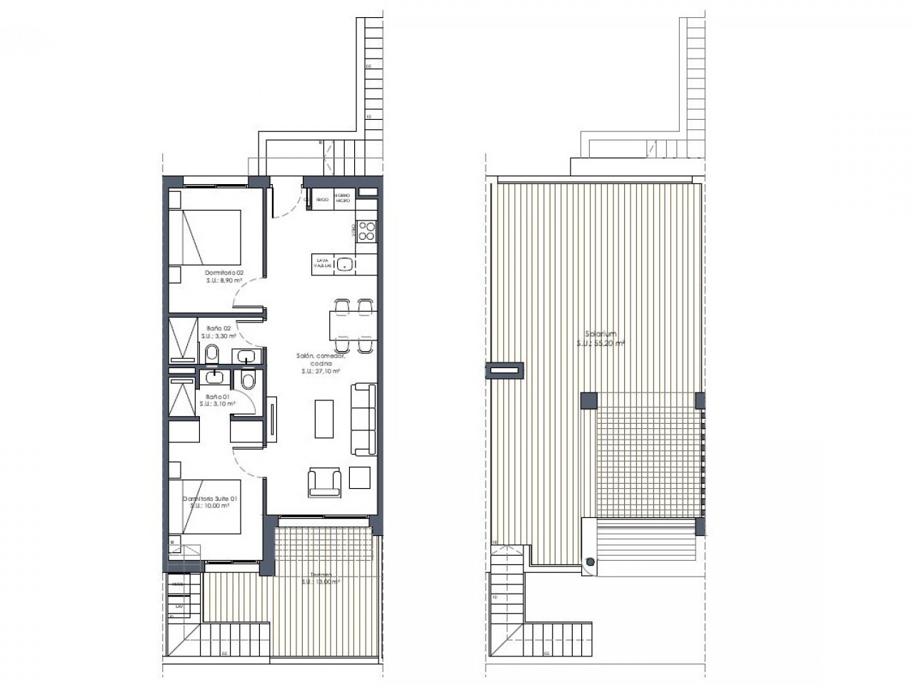 Rust, stijl en elegantie komen hier bij elkaar Nieuw woonproject in San Fulgencio, met eigentijdse maisonnettes met 2 en 3 slaapkamers op een toplocatie, dicht bij stranden, golf en voorzieningen. Het complex beschikt over maisonnettes op de begane grond met privétuinen en op de bovenste verdieping met privésolariums, pergola’s, stopcontacten en waterpunten. Elke woning heeft een eigen parkeerplaats en het complex beschikt over een gemeenschappelijk zwembad in mediterrane stijl met een watervlakte van 85 m², omringd door prachtig aangelegde tuinen. Deze woningen, ontworpen voor comfort, stijl en gemak, zijn gebouwd met eersteklas materialen en moderne voorzieningen om energie-efficiëntie en een hoge levensstandaard te garanderen: San Fulgencio is een charmant Spaans stadje met een keur aan restaurants, winkels en essentiële voorzieningen op loopafstand. Met zijn uitstekende locatie in de buurt van het strand, golfbanen en essentiële voorzieningen biedt het een rustige maar goed verbonden levensstijl. De internationale luchthaven Alicante-Elche ligt op 30 km afstand (30 minuten).