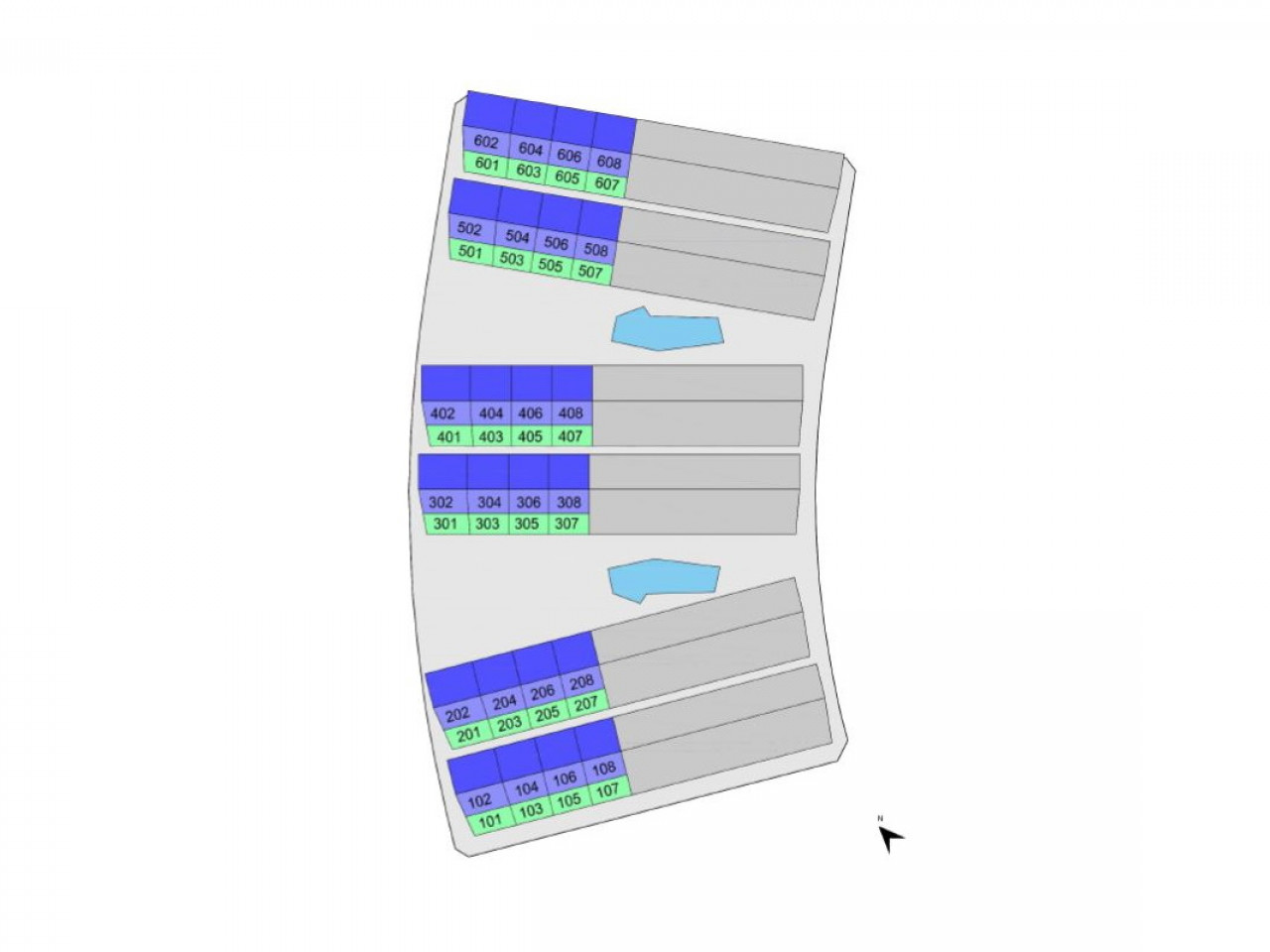 Het complex bestaat uit woningen op de begane grond en op de bovenste verdieping.