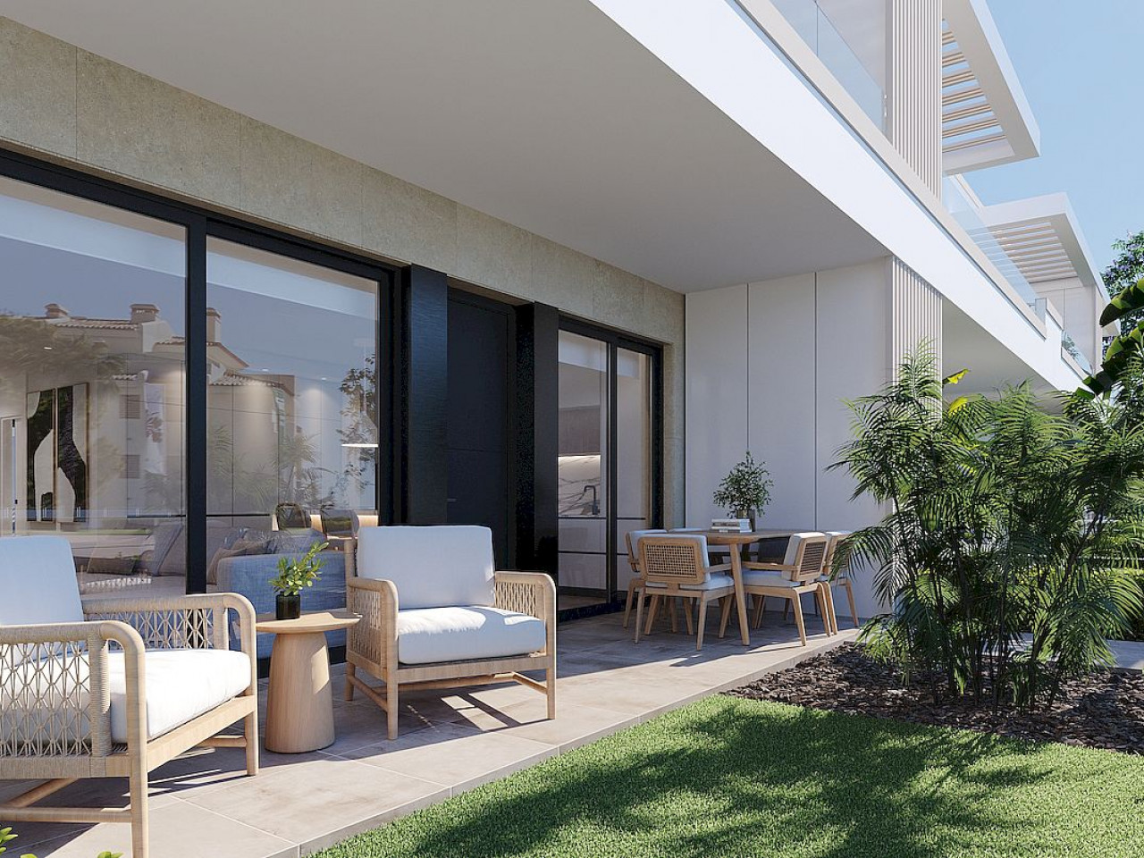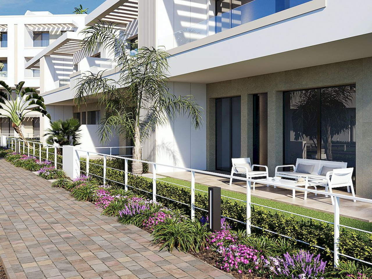 Het complex biedt gemeenschappelijke ruimtes, waaronder ontspanningszones en een zwembad, en biedt een rustige en veilige omgeving voor het hele gezin. Het zonnige klimaat van het gebied, met gemiddeld 320 dagen zon per jaar, vormt een perfecte aanvulling op deze buitenruimtes.