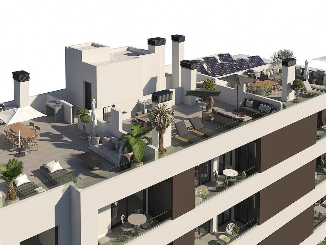 Kom eens kijken in mooi Santa Pola? Santa Pola Elegance is een exclusief nieuwbouwproject met appartementen in het bruisende centrum van Santa Pola, op slechts 500 meter van het strand. Het gebouw bestaat uit 15 moderne woningen met 2 slaapkamers en 2 badkamers, evenals optionele units met 1 of 3 slaapkamers en optionele opslagruimtes om aan verschillende behoeften te voldoen. Elk appartement is ontworpen met lichte en ruime interieurs, met een open woon- en eetkamer die in verbinding staat met de ingerichte keuken. Grote schuifdeuren leiden naar privéterrassen, perfect om te genieten van het milde klimaat van de Costa Blanca. De penthouses beschikken over ruime solariums met barbecueplaatsen, voorinstallatie voor een jacuzzi, buitendouches en tv- en elektriciteitsaansluitingen, waardoor ze perfect zijn voor het hele jaar door buiten entertainment. Santa Pola is een van de meest charmante kustplaatsen in de provincie Alicante. Dit gebouw ligt op slechts 500 meter van het strand en de jachthaven, waardoor bewoners kunnen genieten van de mediterrane levensstijl met alles binnen handbereik. De stad biedt ongerepte stranden en baaien die ideaal zijn om te zonnebaden, snorkelen en watersporten te beoefenen. Op slechts 20 minuten varen ligt het eiland Tabarca, beroemd om zijn kristalheldere water, zeereservaat en mediterrane gastronomie. De stad Alicante ligt op slechts 20 km afstand en de internationale luchthaven Alicante-Elche ligt op slechts 15 km, waardoor u uitstekend bereikbaar bent.