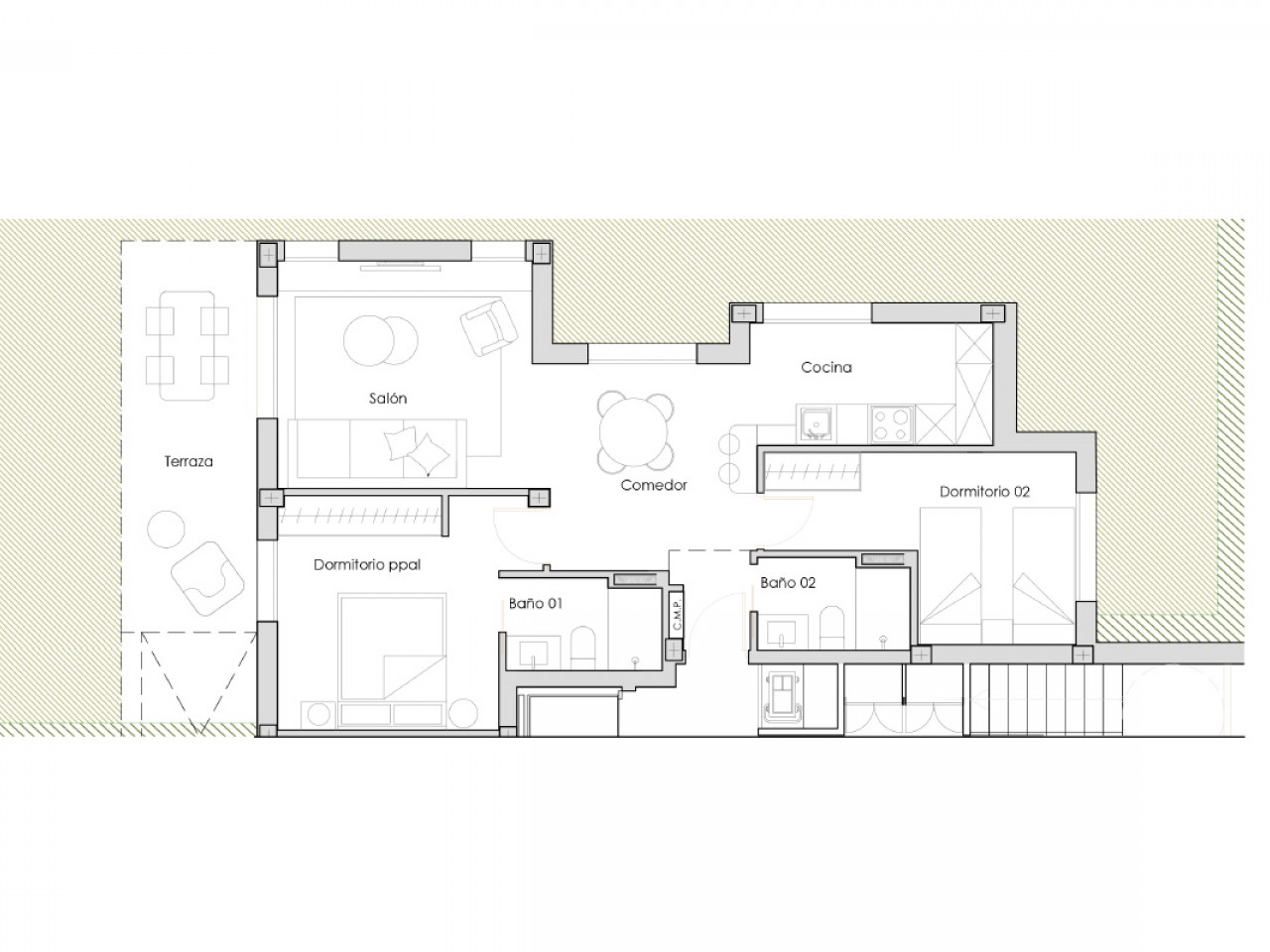 Het project bestaat uit vijf onafhankelijke gebouwen met elk acht volledig ingerichte appartementen verdeeld over vier verdiepingen (twee appartementen per verdieping), wat neerkomt op een totaal van 40 wooneenheden. De appartementen zijn verdeeld over de begane grond met tuin, de eerste en tweede verdieping met terras en de derde verdieping met privésolarium.