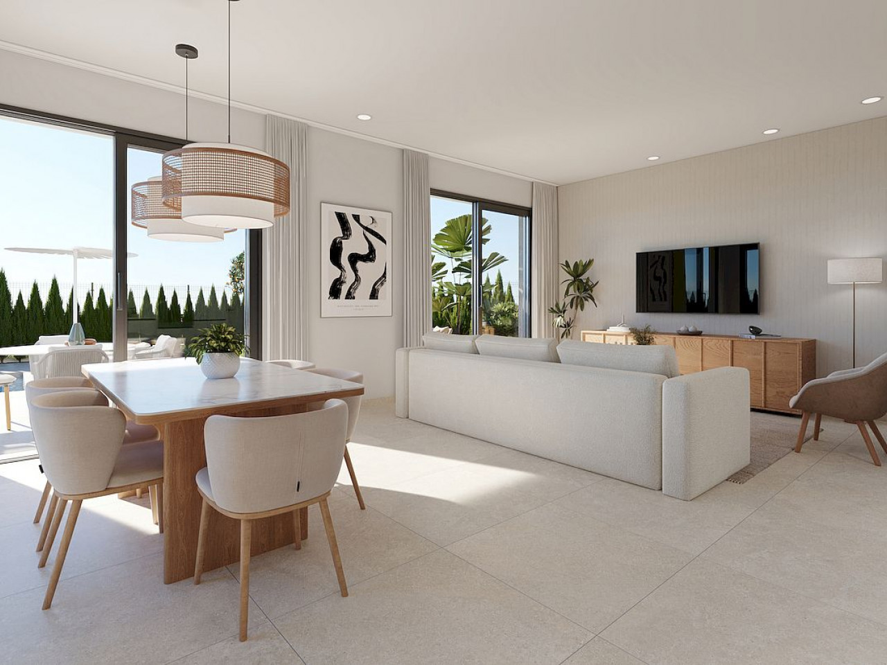 Nieuwbouwwoningen in het prestigieuze Hacienda del Álamo Golf Resort, een omheinde gemeenschap in de regio Murcia die rust, veiligheid en een volledig dienstenaanbod combineert.