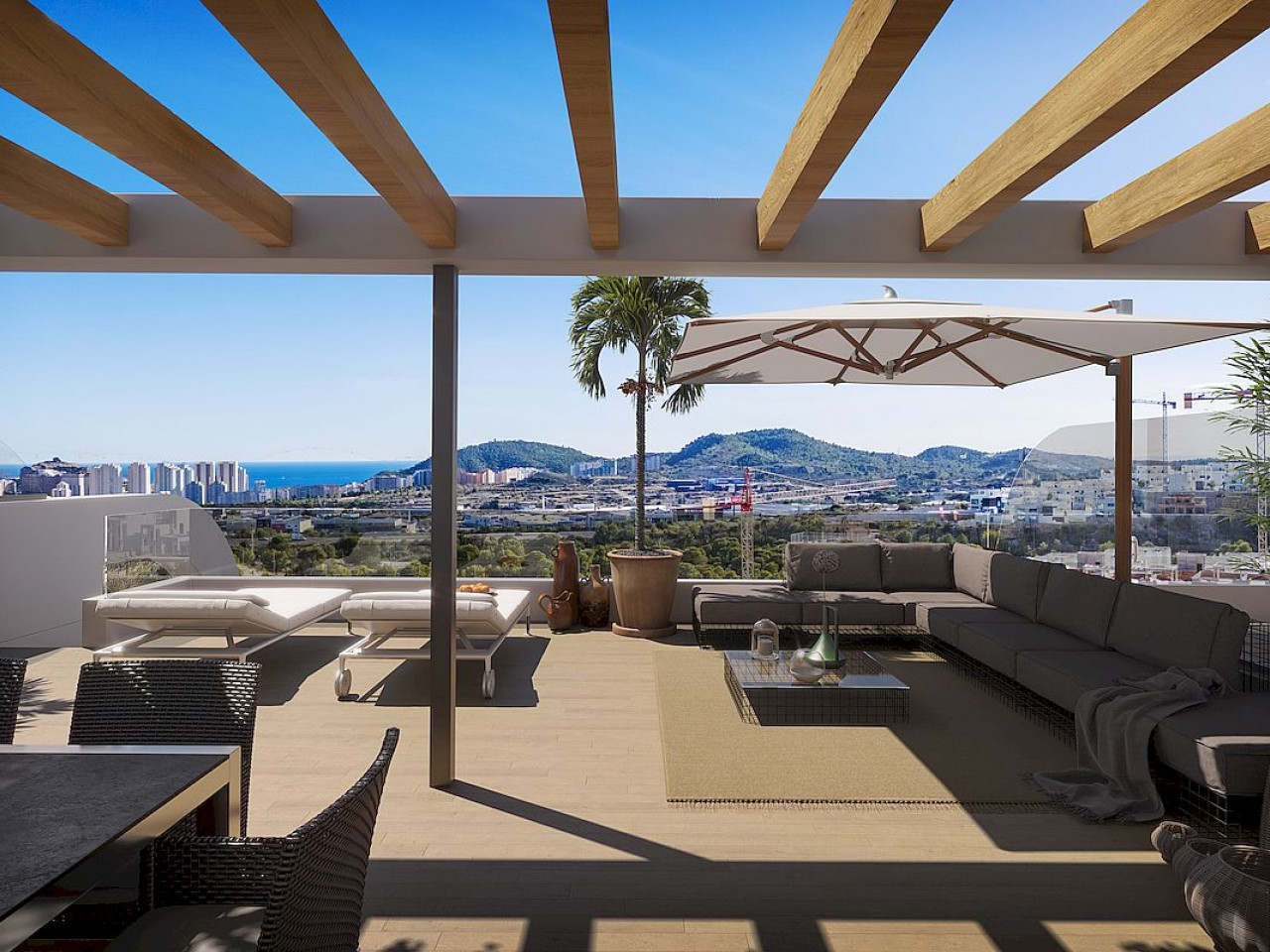 De penthouses vallen op door hun privé-solarium met een geprefabriceerde pergola en barbecueplaats, vanwaar u kunt genieten van een adembenemend uitzicht op de zee en de iconische skyline van Benidorm.