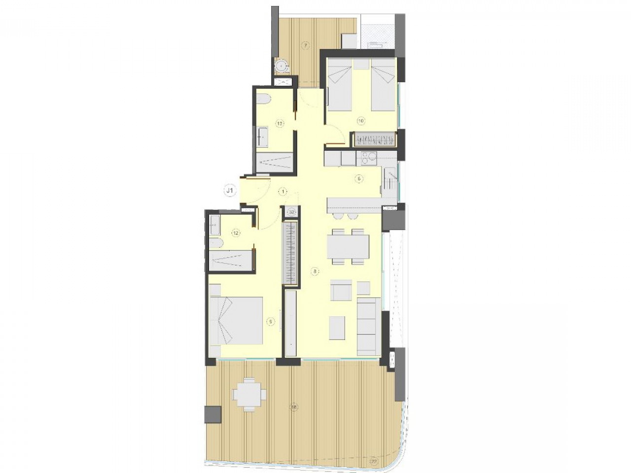 Het project bestaat uit in totaal 72 woningen, waaronder appartementen met 1, 2 en 3 slaapkamers en penthouses in herenhuizen met solariums met 3 slaapkamers en 3 badkamers.