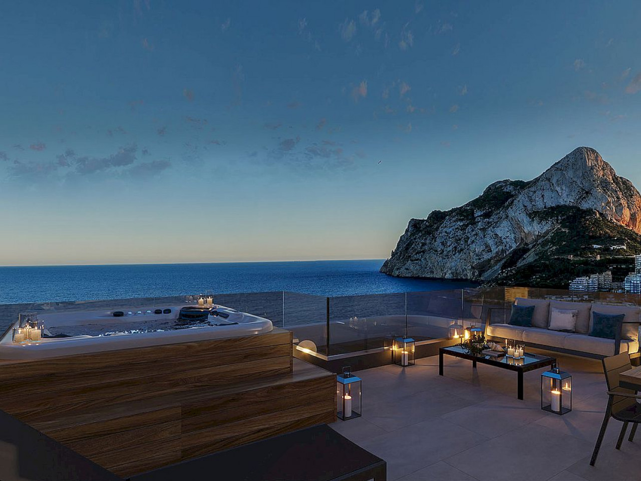 Alle woningen in blok 1 bieden uitzicht op zee en op de rots van Ifach, terwijl blok 2 naast dit uitzicht ook uitkijkt op de zoutmeren van Calpe. De appartementen zijn afgewerkt met Excellence-kwaliteit, terwijl de herenhuis-penthouses met solariums zijn afgewerkt met Premium-kwaliteit en een hydromassage-jacuzzi in hetzelfde solarium.