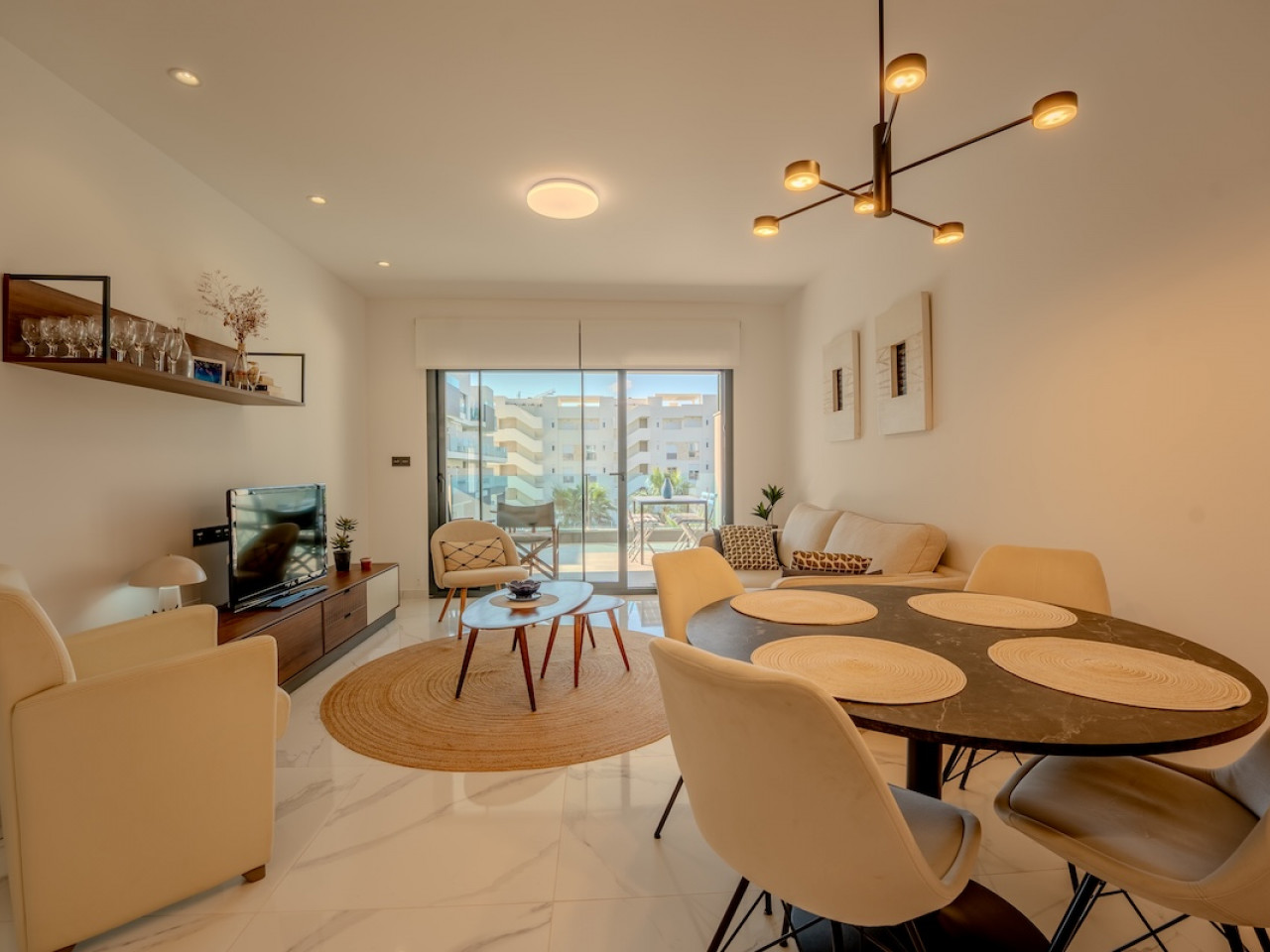 We zijn verheugd om dit uitzonderlijke hoekappartement te presenteren, gelegen in het prestigieuze wooncomplex Oasis Beach XV, in de gewilde wijk El Raso, Guardamar del Segura.