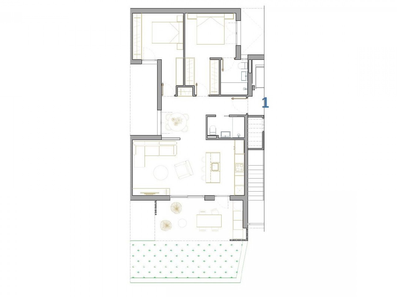Appartementen en penthouses met 2 en 3 slaapkamers, 2 badkamers, met open keuken met woonkamer, grote terrassen, inbouwkasten, volledig uitgeruste badkamers, terrassen. Appartementen op de begane grond hebben een privétuin en penthouses op de bovenste verdieping hebben een privésolarium. Elke woning heeft een ondergrondse parkeergarage met berging.
