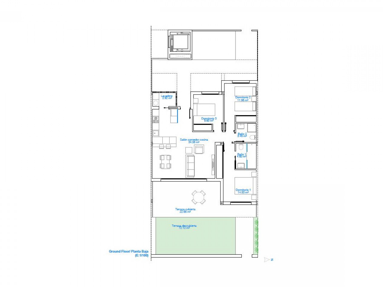De appartementen op de begane grond hebben een ruime privétuin met uitzicht op de gemeenschappelijke ruimten. Appartementen op de eerste verdieping hebben grote terrassen, sommige met gedeeltelijk uitzicht op zee. Penthouses beschikken over privé solariums met prachtig uitzicht op zee en buitenkeukens, pergola’s, jacuzzi’s en kunstgras.