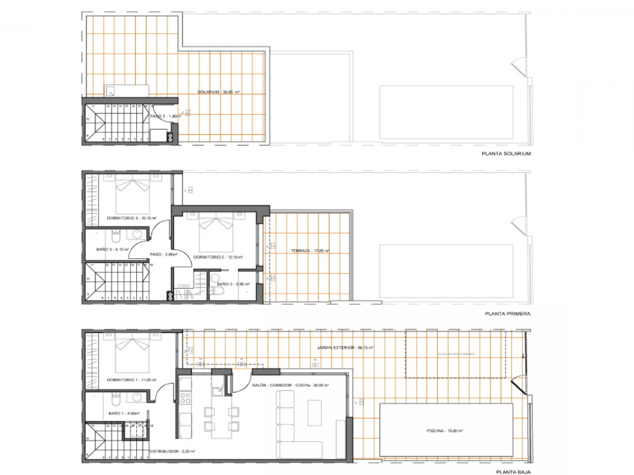 Dit project bestaat uit 12 halfvrijstaande villa’s met 3 slaapkamers en 2 of 3 badkamers, verdeeld over twee verdiepingen, inclusief een privézwembad van 15 m2, een terras van 17,85 m2 en een solarium van 36,85 m2 met zomerkeuken in geselecteerde woningen.