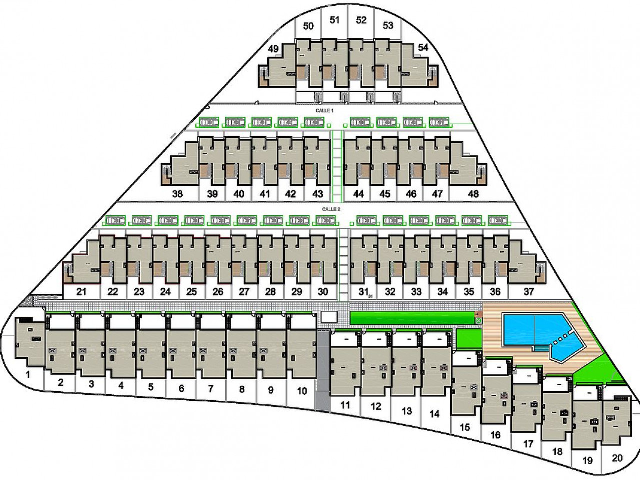 Nieuwbouwproject van 54 herenhuizen in een rustige omgeving bij de Alenda Golfbaan in Monforte del Cid.