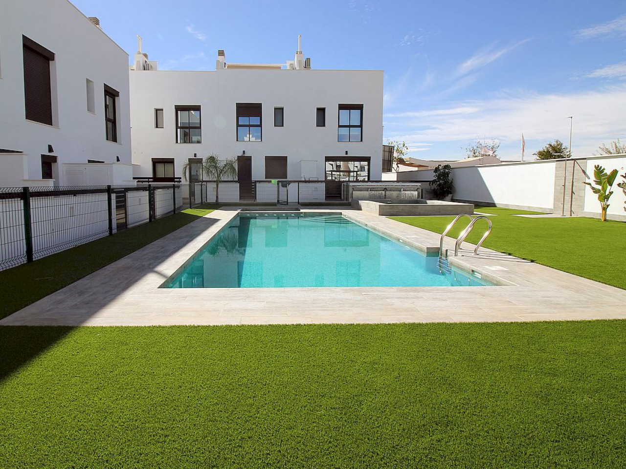 De Bahia town housees maken deel uit van een uitstekend wooncomplex, dat een zwembad, verwarmde jacuzzi, evenals een fitnessruimte buiten en een grote gemeenschappelijke ruimte voor ontspanning omvat.