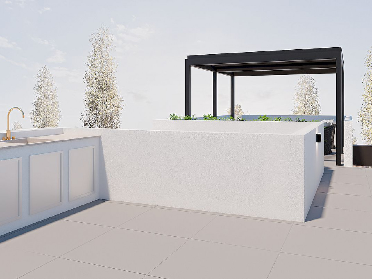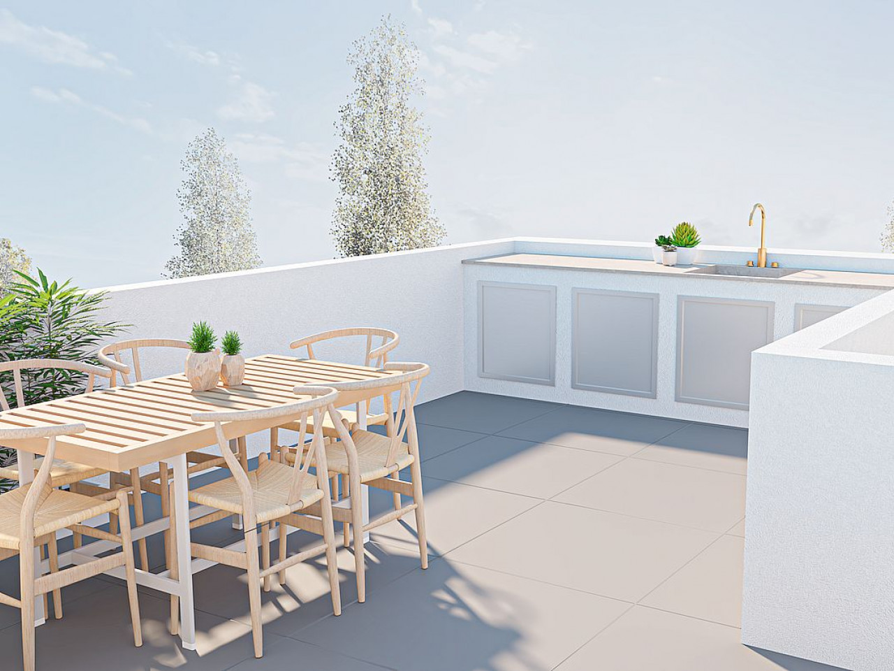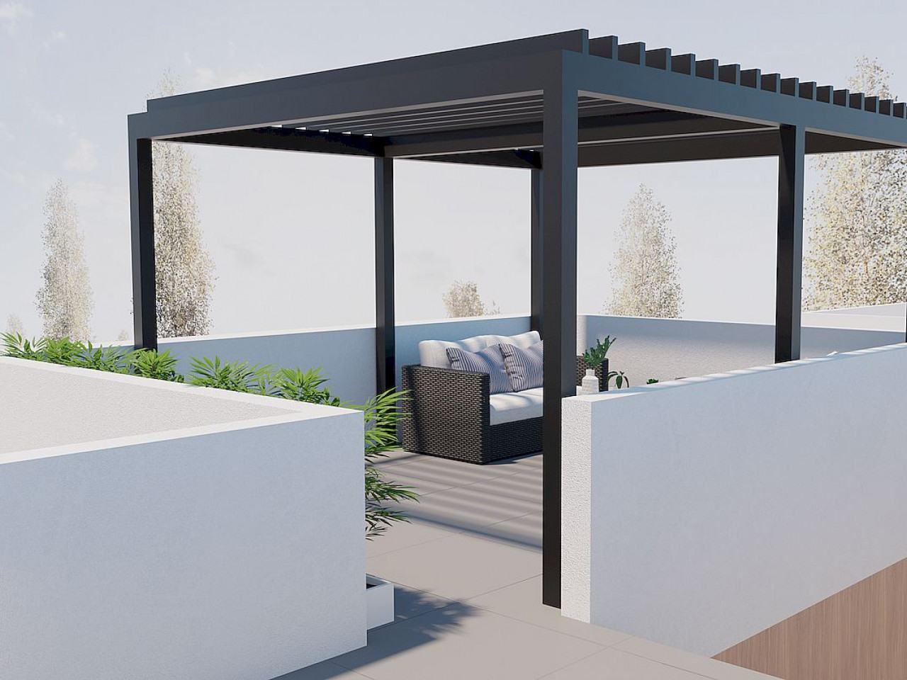 Dit exclusieve complex bestaat uit drie luxe herenhuizen die zijn ontworpen voor comfort en stijl. Elk huis heeft drie slaapkamers, twee badkamers, een privézwembad, een ruim terras, een binnenpatio, een solarium op het dak en een privéparkeerplaats. De woningen zijn uitgerust met badkamers, moderne keukens met inbouwapparatuur, vooraf geïnstalleerde airconditioning en hoogwaardige afwerking.