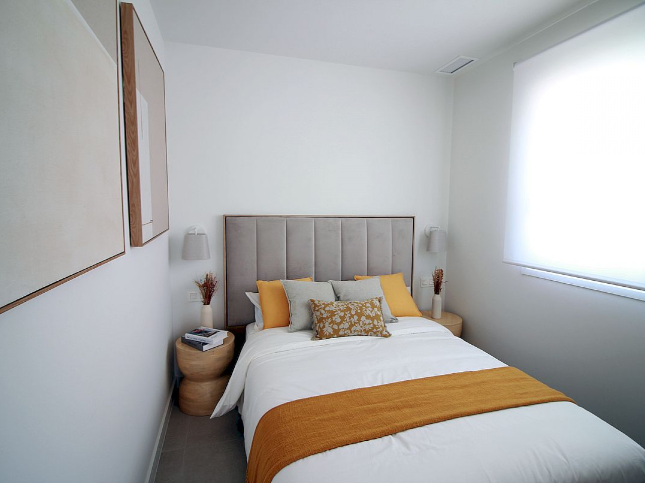 Alle woningen bestaan uit 3 slaapkamers met ingebouwde kasten, 2 badkamers, open keuken met woonkamer waar u panoramische ramen heeft die op de terrassen uitkomen. Alle woningen hebben een parkeerplaats en een privé zwembad.