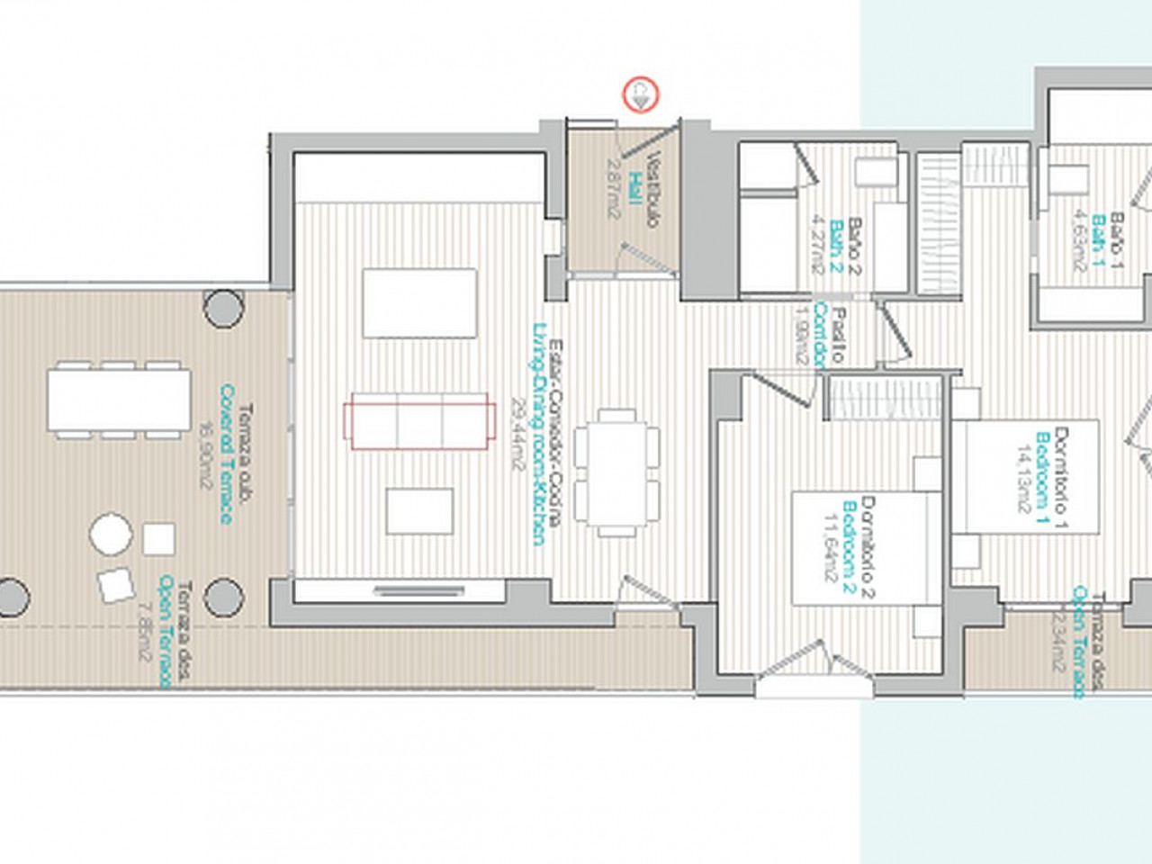 Appartementen met 1, 2 en 3 slaapkamers met grote terrassen die de optimalisatie van ruimte en functie op zijn best combineert. Grote gemeenschappelijke ruimtes met tuinen, zwembad, paddle, kindergedeelte, fitnessruimte en overloopzwembad met uitzicht op zee.