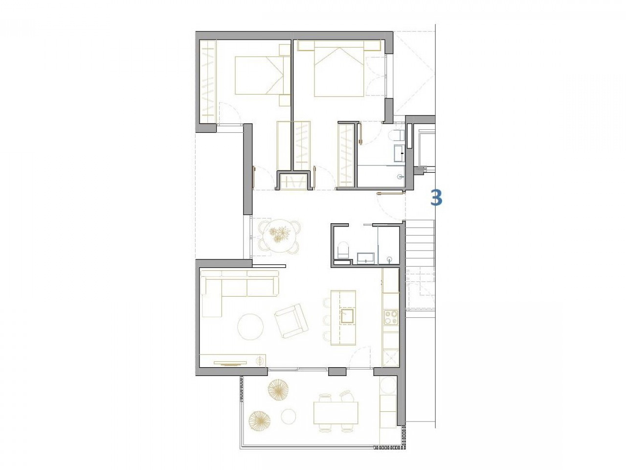 Appartementen en penthouses met 2 en 3 slaapkamers, 2 badkamers, met open keuken met woonkamer, grote terrassen, inbouwkasten, volledig uitgeruste badkamers, terrassen. Appartementen op de begane grond hebben een privétuin en penthouses op de bovenste verdieping hebben een privésolarium. Elke woning heeft een ondergrondse parkeergarage met berging.