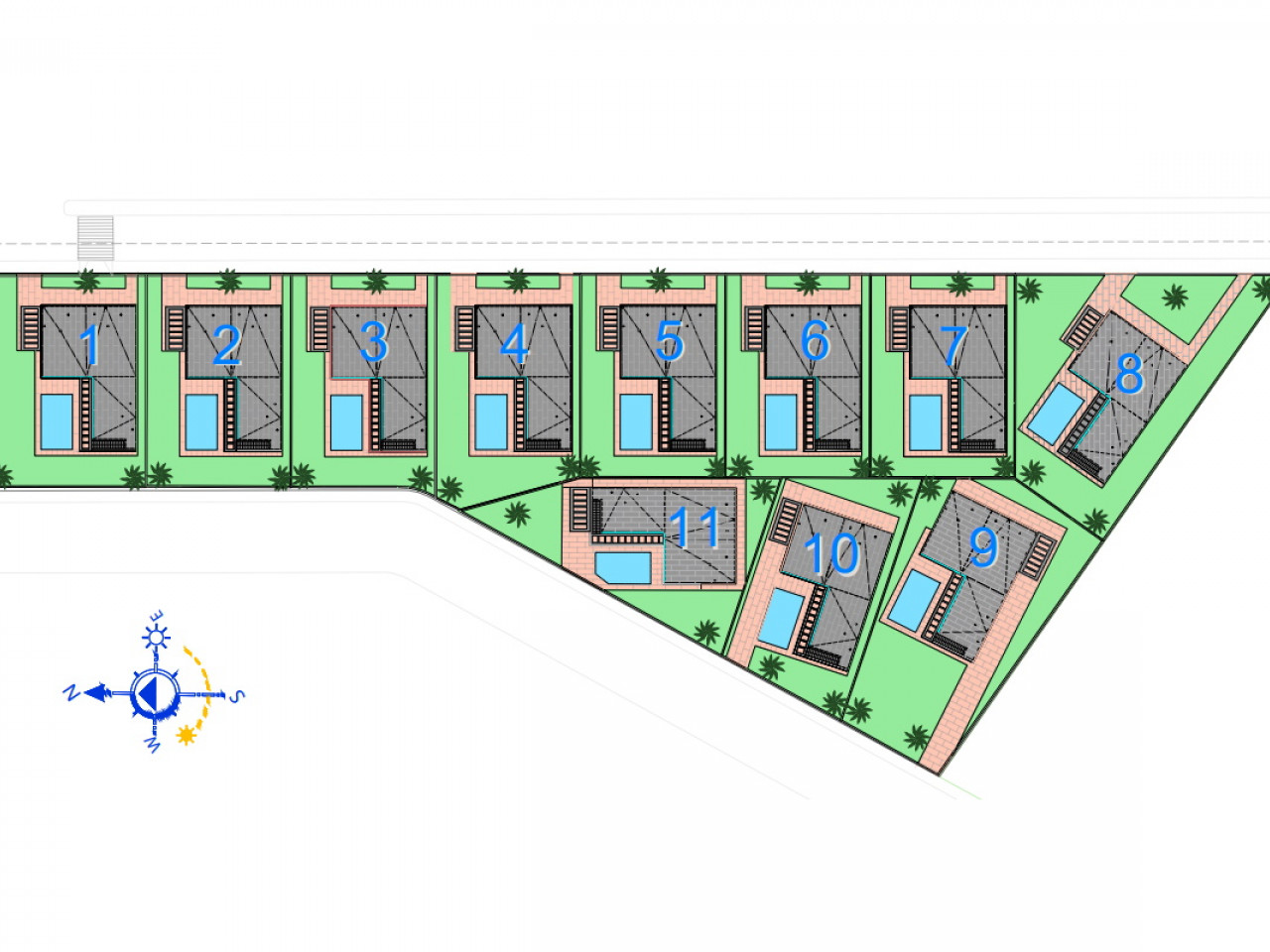 Elke villa komt op een onafhankelijk perceel van ongeveer 500 m² en heeft een privézwembad, solarium, parkeerplaats en ruime aangelegde tuinen, waardoor privacy, comfort en kwaliteit in elk detail worden gegarandeerd.