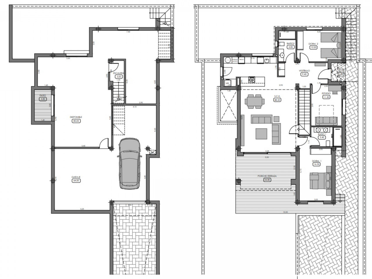 Deze villas is gelijkvloers en bestaat uit een woon-/eetkamer met openslaande deuren naar de tuin en het terras met privézwembad, en een open moderne keuken. Er is een hoofdslaapkamer met kleerkast, en-suite badkamer met toegang tot het terras, twee extra tweepersoonsslaapkamers en een gastenbadkamer. Elke villa heeft een half afgewerkte kelder van ongeveer 170 m2.