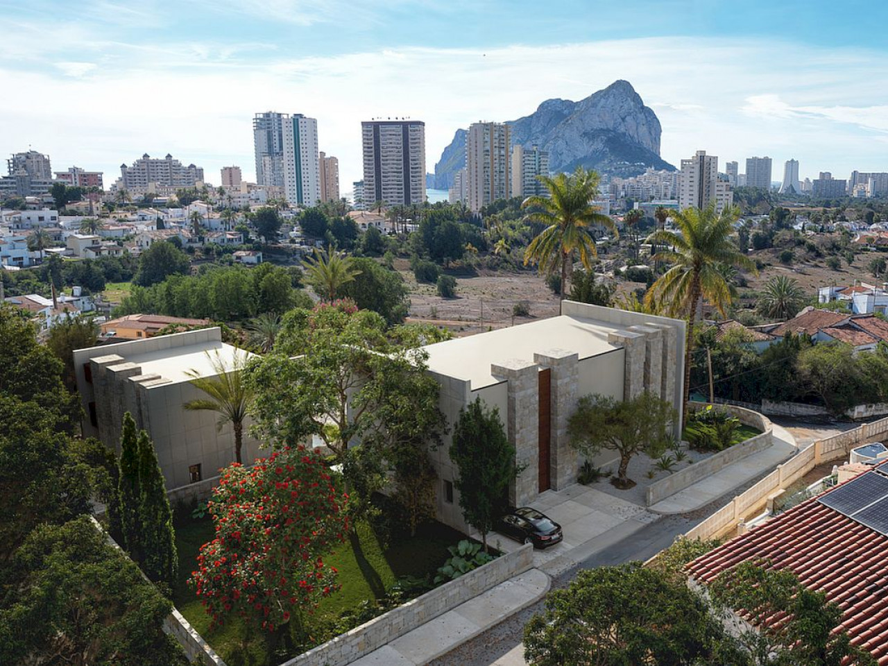 Deze moderne villa’s in Calpe liggen in een rustige omgeving en bieden een hoge mate van privacy. Ze zijn ontworpen voor wie op zoek is naar comfort en elegantie in hun woonruimte. De villa’s worden omringd door een prachtig landschap en liggen op slechts 5 minuten van het centrum van Calpe en de prachtige stranden. De stad ligt op een ideale locatie, gemakkelijk bereikbaar via de snelweg A7 en de N332 die van Valencia naar Alicante loopt; het is ongeveer een uur rijden vanaf de luchthaven van Alicante.