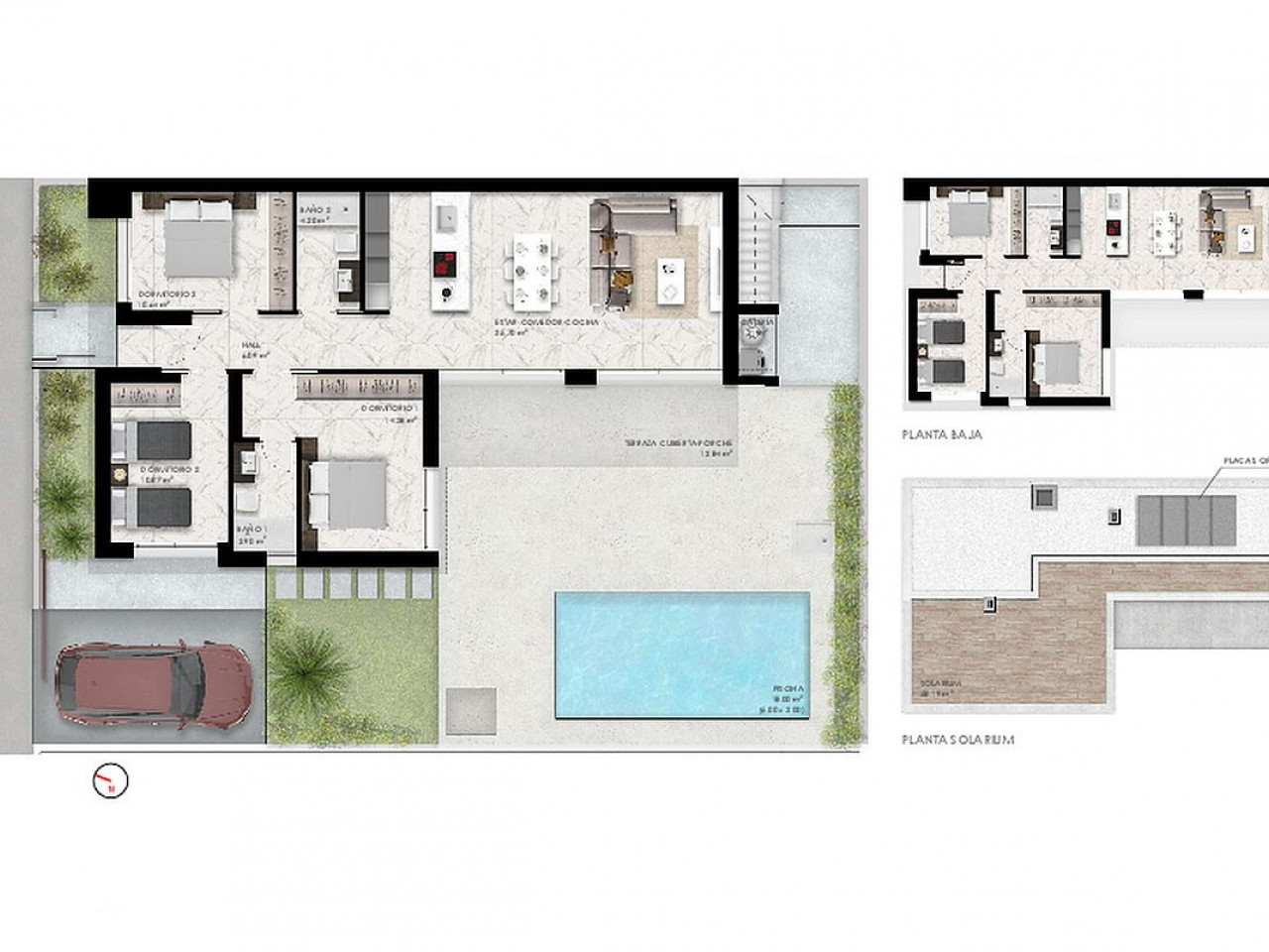 Dit project bestaat uit drie verschillende modellen villa’s met drie slaapkamers en twee of drie badkamers met privézwembad en solarium bovenop.
