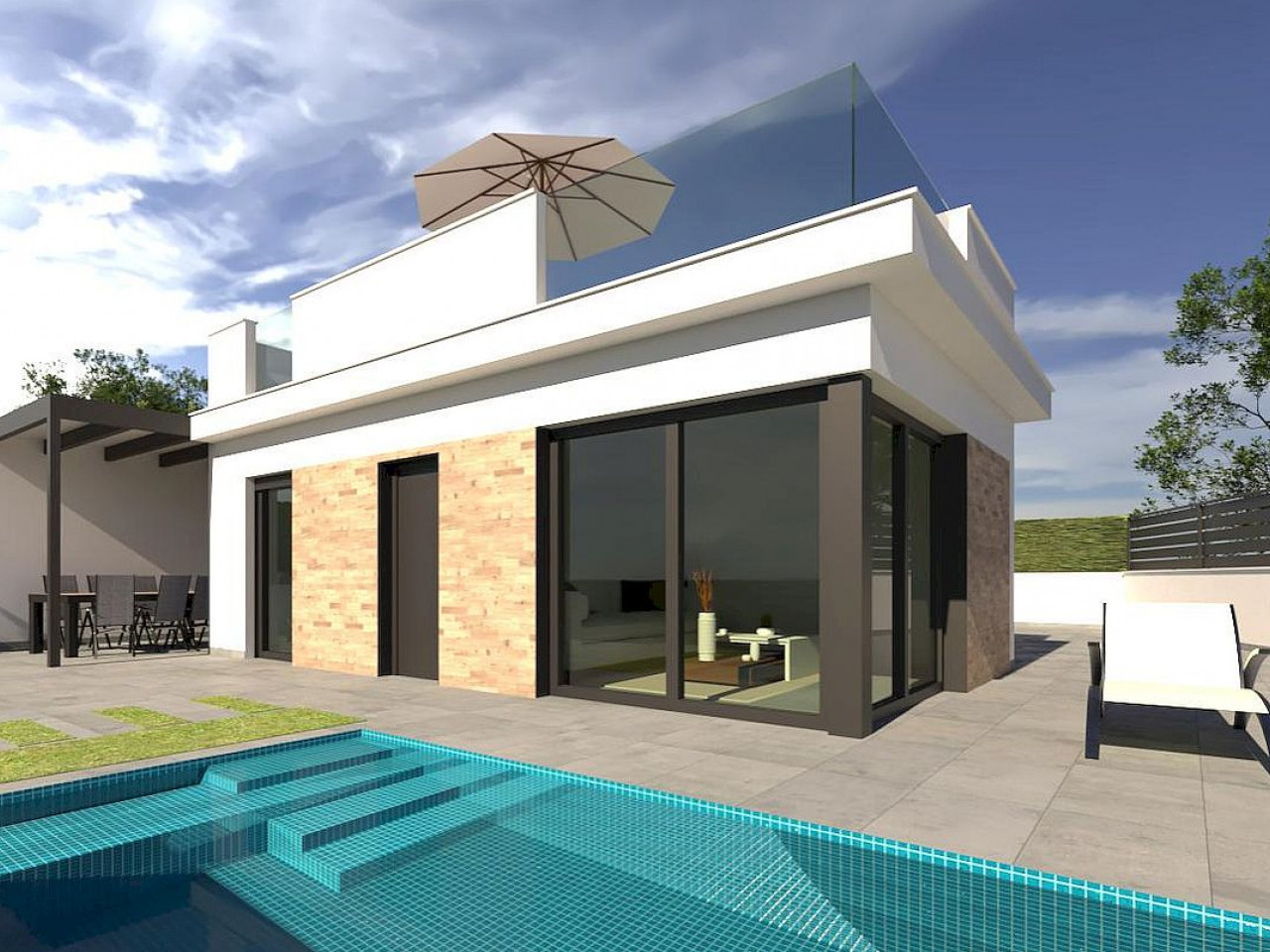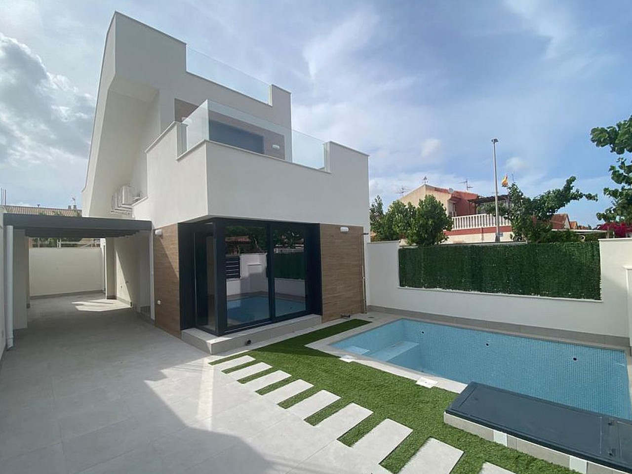 Olivo del Mar 2 is een complex bestaande uit 9 villa’s, met privézwembad en overdekte parkeerplaats voor elke woning in Los Alcázares, op slechts 700 meter van de zee.