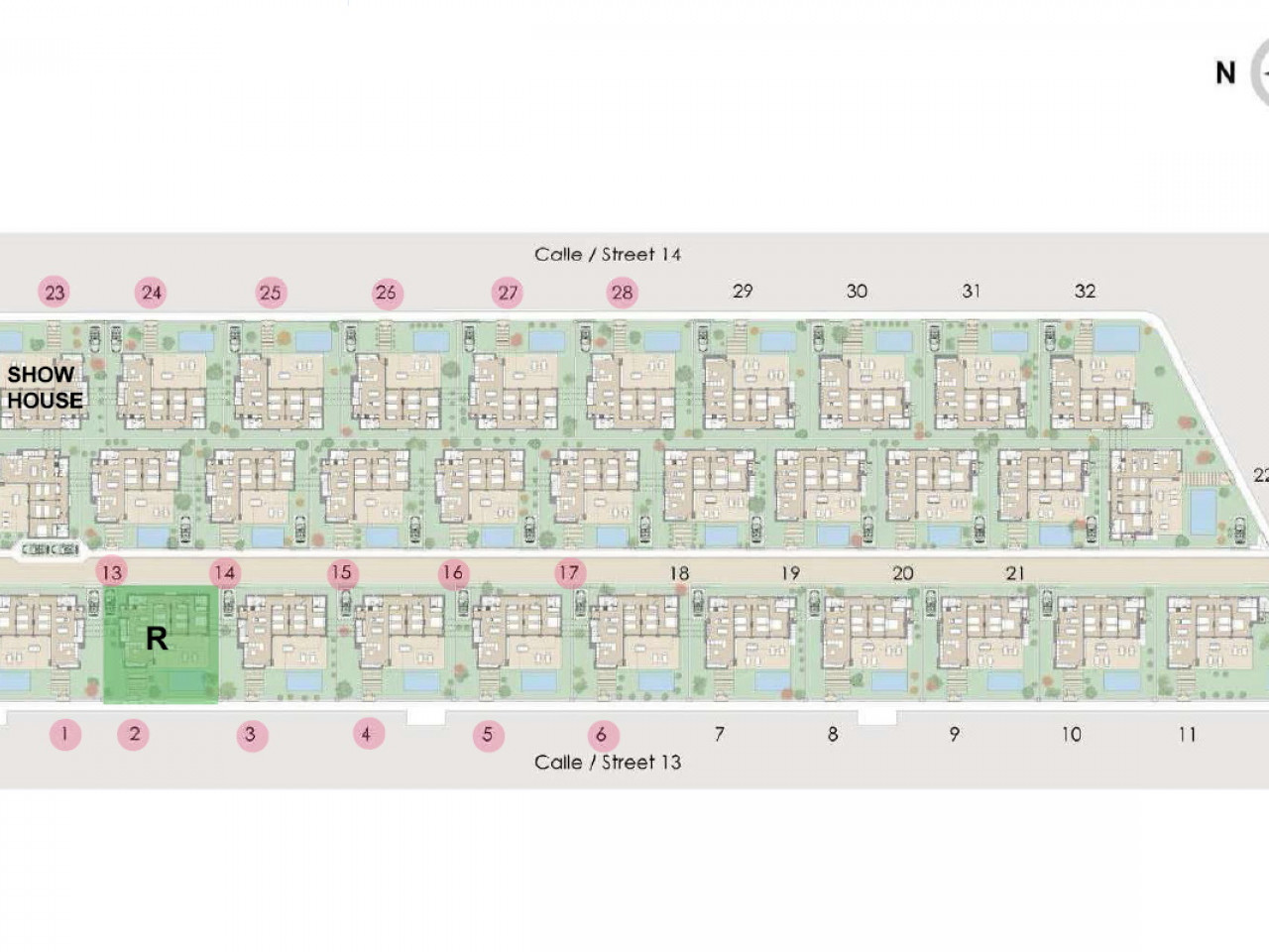 Kopers kunnen kiezen tussen villa’s met één niveau met 3 slaapkamers, 2 badkamers en een solarium op het dak of villa’s met twee verdiepingen met 4 slaapkamers, 3 badkamers en een solariumterras op de eerste verdieping.