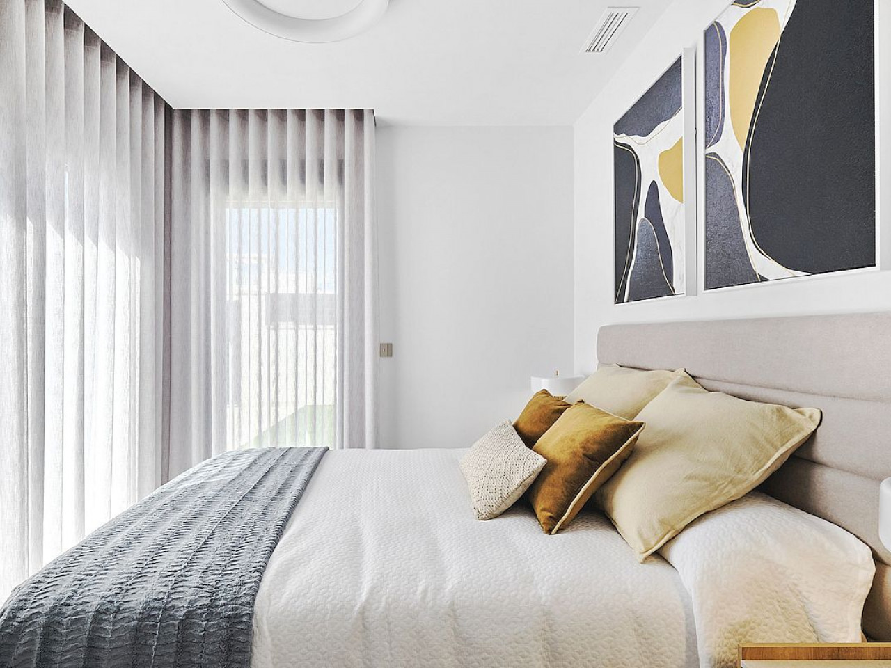 Deze moderne woningen bieden 3 slaapkamers, 3 badkamers, een ruime woon-eetkamer en een volledig uitgeruste keuken, evenals een tuin en zwembad.