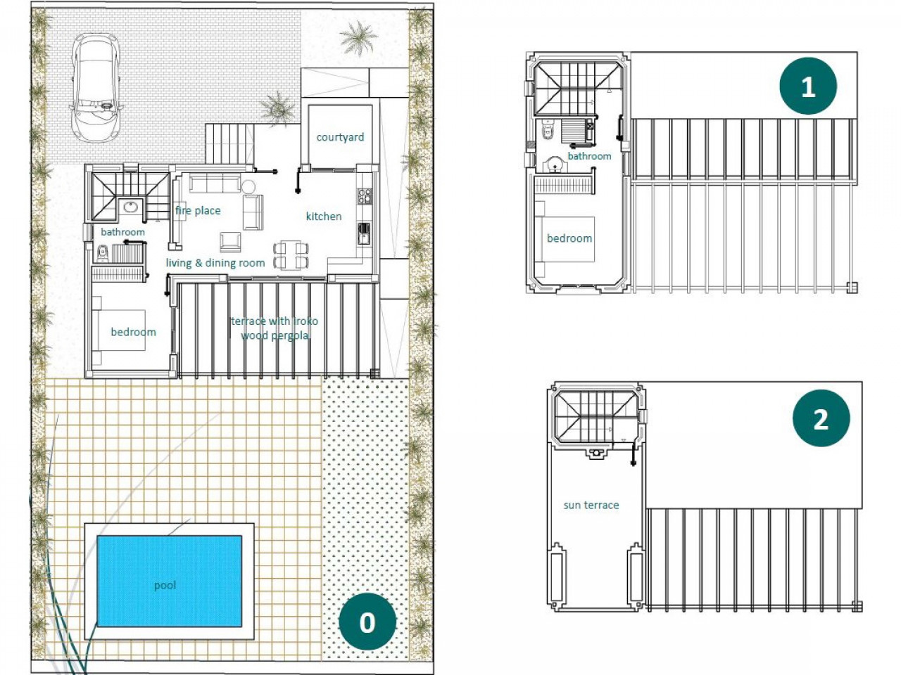 Deze mediterrane woningen staan op ruime kavels, elk met een privézwembad, volledig aangelegde tuin en parkeerplaats.