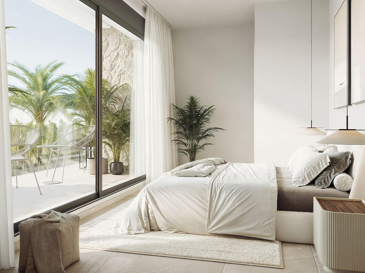 Elke villa heeft 3 grote, ruime tweepersoonsslaapkamers met inbouwkasten en er zijn 3 stijlvolle, moderne badkamers. Vanuit de slaapkamers op de eerste verdieping heeft u toegang tot het terras, waar u kunt ontspannen en genieten van het uitzicht. Bij binnenkomst op het ruime perceel vindt u volop ruimte om te ontspannen of gasten te ontvangen in de tuin, op de terrassen en bij het privézwembad.