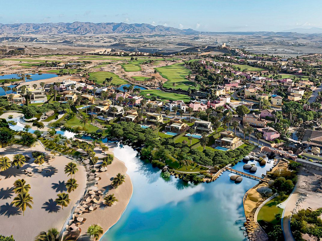Een bijzondere villa. langs een bijzondere golf-course Sweet Water Island is een beperkte selectie van luxe villa’s aan de fairway met een prachtig uitzicht over de kampioenschapsgolfbaan Indiana en de bergketens daarachter in Desert Spring Golf Resort. Deze prachtige, moderne en stijlvolle ontwikkeling ligt op een benijdenswaardige locatie in het Desert Springs resort en biedt een selectie van villa’s met drie of vier slaapkamers en een prachtig uitzicht over de kampioenschapsgolfbaan Indiana en de bergketens daarachter.Het eigentijdse ontwerp en het natuurlijke licht dat een algeheel gevoel van ruimte creëert, zijn de opvallende kenmerken van het verfijnde interieur dat stijlvolle woningen met een moderne uitstraling biedt. Een omheinde voortuin, diepe schaduwrijke veranda’s, een eigen aangelegde tuin met direct uitzicht op de golfbaan, een privézwembad, een ingebouwde barbecue en uitgebreide dakterrassen zijn slechts enkele van de externe kenmerken van de woningen. Desert Springs Resort is uniek, gelegen in een van de meest rustige en gewilde enclaves aan de Andalusische kust in Cuevas de Almanzora en Vera in Almería. Het is een bekroond golf-, sport- en recreatieoord, gelegen tussen rotsachtige uitlopers en smaragdgroene fairways, genesteld in een luxe landgoed. Het resort is omgeven door ongerepte natuur en biedt een spectaculair uitzicht op karakteristieke bergketens en de Middellandse Zee. Desert Springs heeft een ongeëvenaarde ligging op een plateau dat uitsteekt boven de vlakte van de Almanzora-rivier, op slechts enkele kilometers landinwaarts van de badplaatsen Vera en Villaricos. De dichtstbijzijnde stad is het marktstadje Cuevas de Almanzora en er zijn ook winkels in Palomares. Het strand en het mooie havenstadje Villaricos liggen net voorbij Palomares en hebben een keur aan goede bars en restaurants, waaronder een uitstekende strandbar. De internationale luchthaven van Almeria ligt op 45 minuten rijden via de A7, Murcia/Corvera op 70 minuten en Alicante op 110 minuten met de auto.