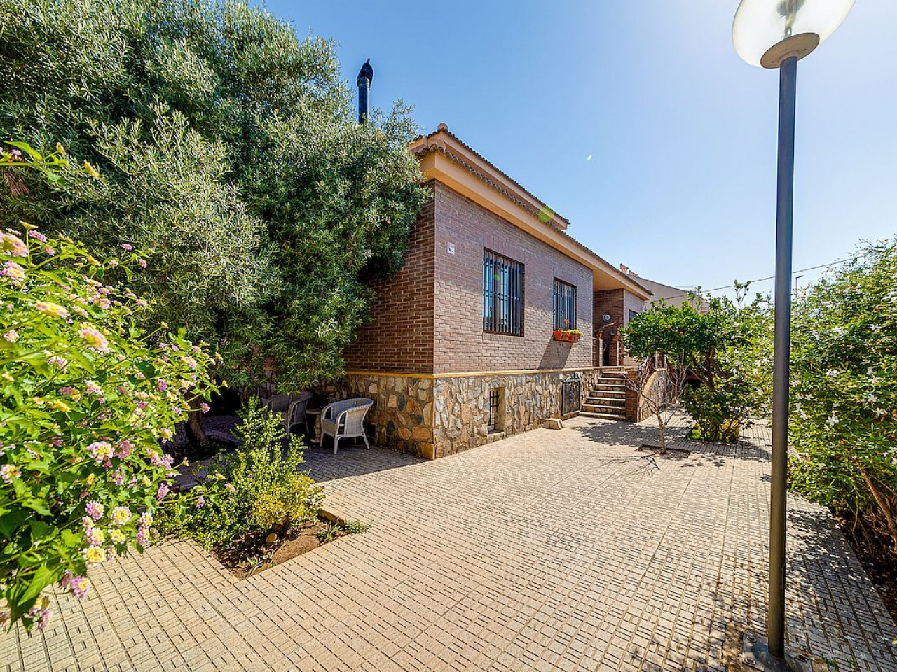 Deze villa met 4 slaapkamers en 5 badkamers bestaat uit een begane grond, eerste verdieping met terras en kelder. Er is een garage voor 2 auto’s, een grote kelder en een ruim perceel van 600m².
